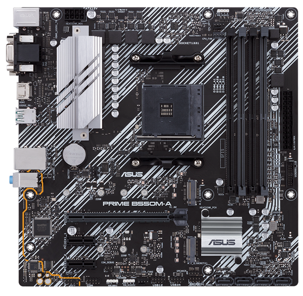 ASUS PRIME B550M-A / CSM, Socket AM4, B550, 2*DDR4, D-Sub+DVI+HDMI, SATA3 + RAID, Audio, Gb LAN, USB 3.1*8, USB 2.0*4, COM*1 header (w / o cable), mATX ; 90MB14I0-M0EAYC
