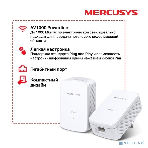 Сетевой адаптер Mercusys MP500 KIT AV1000 Комплект гигабитных адаптеров Powerline, стандарт HomePlug AV2, 1 гигабитный порт, до 300 м по электросети, Plug and Play купить в интернет-магазине TPShop.Ru. Наличный и безналичный расчет, розничные и оптовые продажи. Самовывоз, доставка по Москве и МО, отправка во все регионы России.