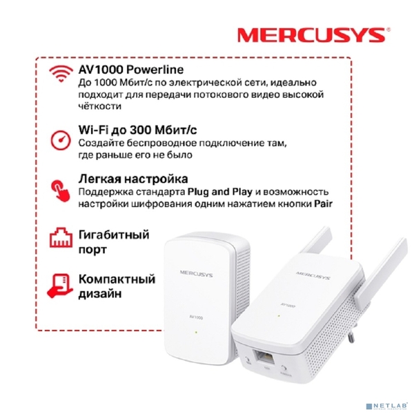 Сетевой адаптер Mercusys MP510 KIT AV1000 Комплект гигабитных Wi-Fi адаптеров Powerline купить в интернет-магазине TPShop.Ru. Наличный и безналичный расчет, розничные и оптовые продажи. Самовывоз, доставка по Москве и МО, отправка во все регионы России.