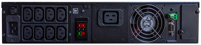- ИБП, документация, комплект ножек-подставок, комплект для установки в серверную стойку (ручки и винты), 2 кабеля питания, кабель USB, кабель RS232