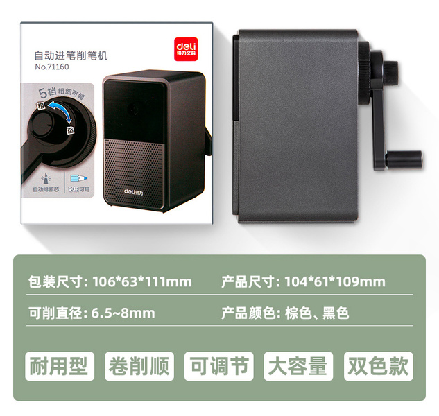 Точилка для карандашей механическая Deli 71160Black 1 отверстие пластик черный купить в интернет-магазине TPShop.Ru. Наличный и безналичный расчет, розничные и оптовые продажи. Самовывоз, доставка по Москве и МО, отправка во все регионы России.