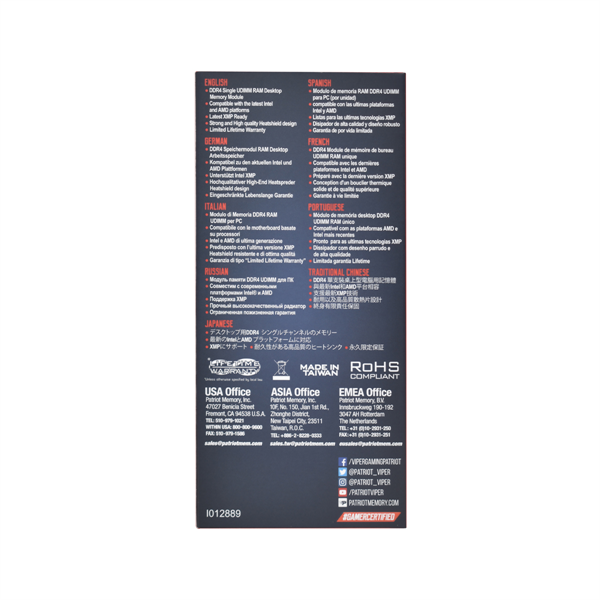 - Patriot Viper ELITE II DDR4 DIMM 16GB 3600MHz SINGLE 1*8GB CL20 20-26-26-46 1.35V