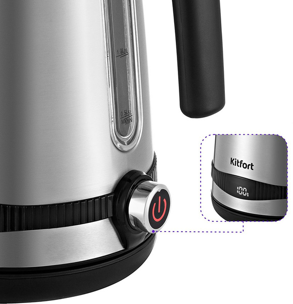 - Чайник оснащен функцией поддержания температуры воды в течение двух часов. Для максимального удобства текущая температура воды в чайнике отображается на дисплее.