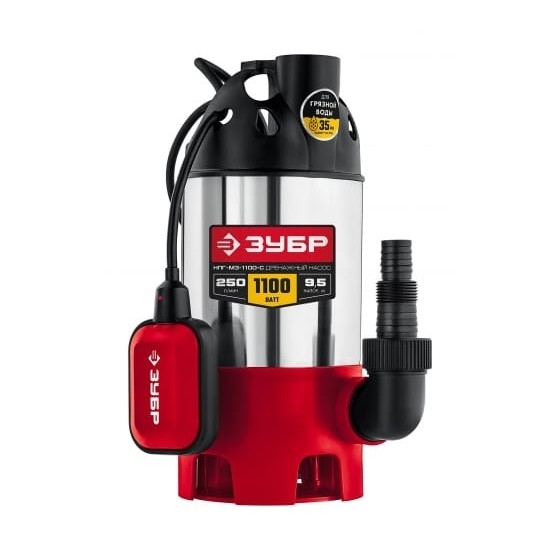 ЗУБР Дренажный насос для грязной воды, корпус - нерж. сталь, 1100 Вт [НПГ-М3-1100-С]
