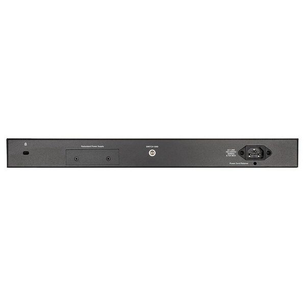 - Стекируемый. Консольный порт и порт управления RJ45. Автоопределение MDI/MDIX на RJ45. Разъем для резервного источника питания DPS-500A (приобретается отдельно). Защита от статич.электричества до 6кВ на RJ45