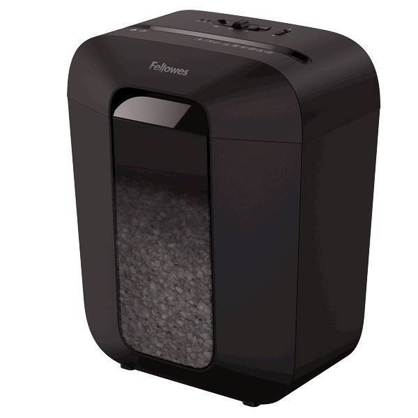 Уничтожитель бумаг Шредер Fellowes PowerShred LX50 черный (секр.P-4)/перекрестный/9лист./17лтр./скрепки/скобы/пл.карты