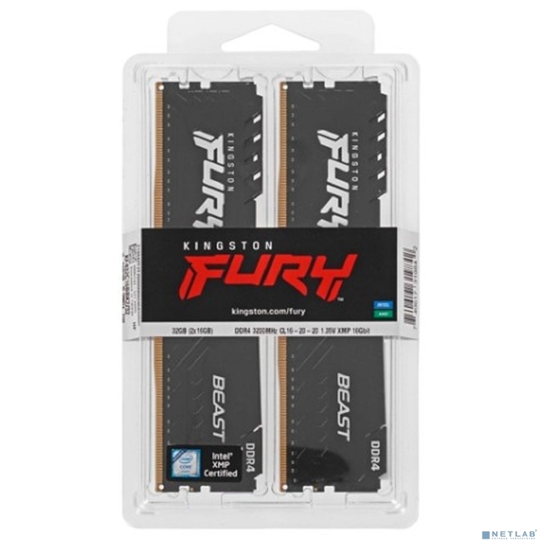 Kingston KF432C16BBK2 / 32 FURY Beast Black DDR4 DIMM 32GB Kit 2x16Gb PC4-25600, 3200MHz, CL16