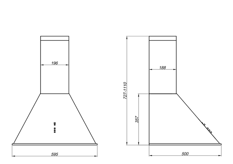- Ширина вытяжки, мм