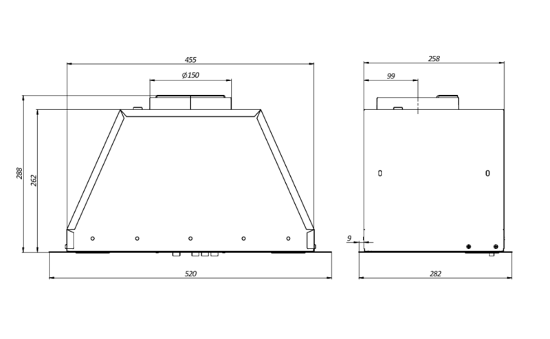 - Ширина вытяжки, мм