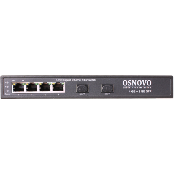 Управляемый коммутатор для рабочих групп OSNOVO Гигабитный коммутатор на 6 портов, 4*10/100/1000Base-T, 2*SFP 1000Base-FX