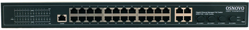 OSNOVO Управляемый L2 PoE коммутатор Gigabit Ethernet на 24 RJ45 PoE + 4 x GE Combo Uplink, до 30W на порт, суммарно до 400W