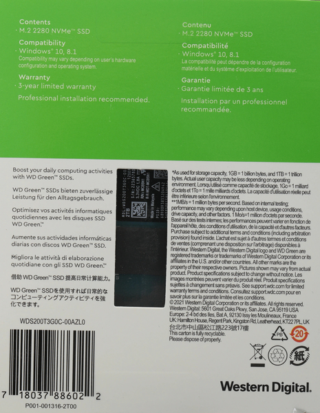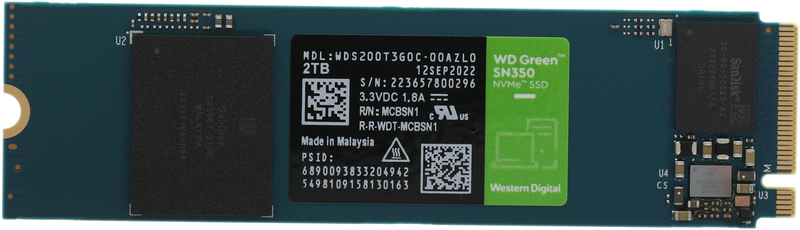 Твердотельный накопитель SSD WD Green SN350 NVMe WDS200T3G0C 2ТБ M2.2280 (QLC)