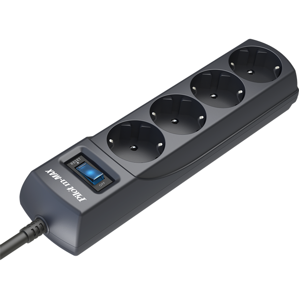 - Сетевой фильтр PILOT m-MAX , 1,8м, 4 розетки, 15А/3,3кВт, графит, Россия