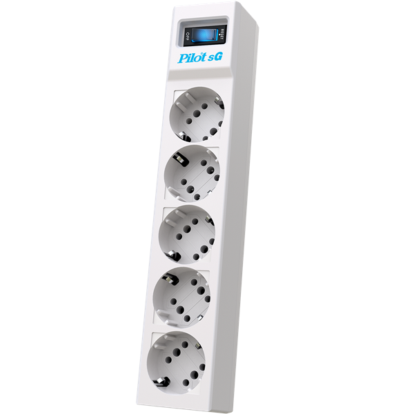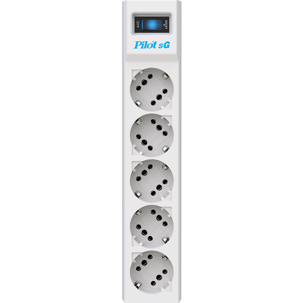 - Сетевой фильтр PILOT sG, 5м, 5 розеток GP, 10А/2,2кВт, св. серый , Россия