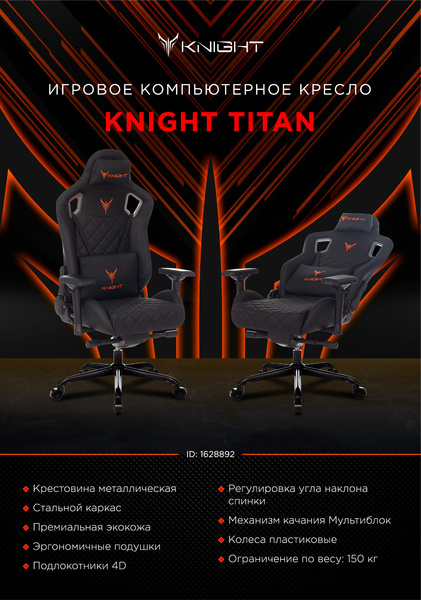 Кресло игровое Knight Titan черный ромбик эко.кожа с подголов. крестовина металл купить в интернет-магазине TPShop.Ru. Наличный и безналичный расчет, розничные и оптовые продажи. Самовывоз, доставка по Москве и МО, отправка во все регионы России.