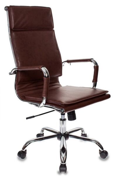 Бюрократ Ch-993 brown, Кресло, иск. кожа, высокая спинка, крестовина хром, коричневый