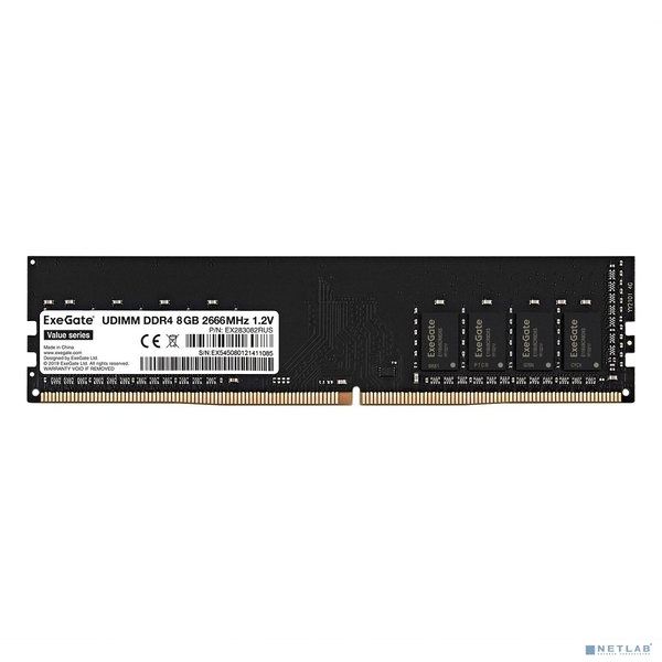 Оперативная память ExegateEX283082RUS Модуль памяти ExeGate Value DIMM DDR4 8GB <PC4-21300> 2666MHz