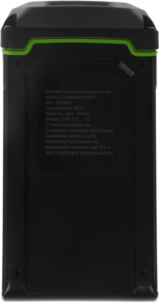 Greenworks Аккумулятор с USB разъемом GreenWorks G40USB4, 40V, 4 А.ч [2939507] купить в интернет-магазине TPShop.Ru. Наличный и безналичный расчет, розничные и оптовые продажи. Самовывоз, доставка по Москве и МО, отправка во все регионы России.