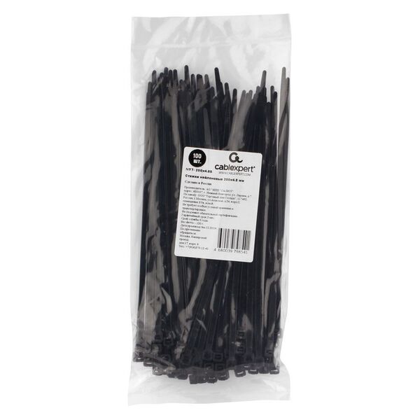 Стяжки NYT-200x4.8В пластиковые 200 мм х 4.8 мм, чёрные (100 шт.) <Одна единица товара - это упаковка из 100 шт.>, RTL {150}