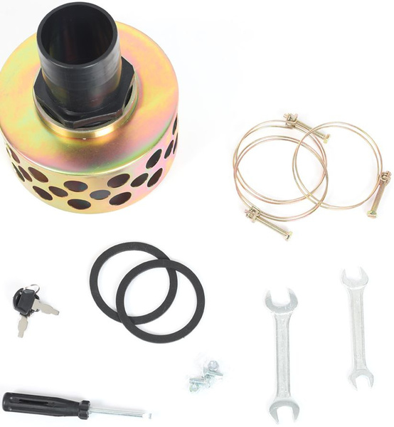 - Мотопомпа в сборе, уплотнительная шайба (2 шт.), соединительные патрубки (2 шт.), зажимные кольца (2 шт.), хомуты (3 шт.), заборный фильтр, инструкция с гарантийным талоном.
