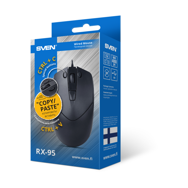 Мышь Sven RX-95 чёрная (кн. копировать-вставить. 5+1кл. 1000-4000 DPI, кор.) купить в интернет-магазине TPShop.Ru. Наличный и безналичный расчет, розничные и оптовые продажи. Самовывоз, доставка по Москве и МО, отправка во все регионы России.