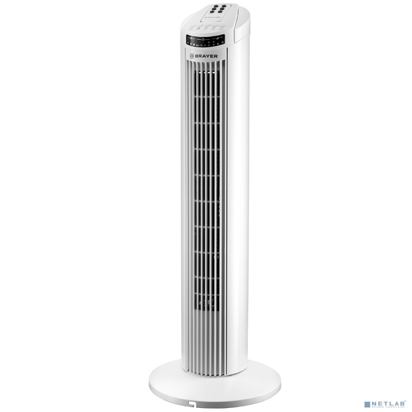 BRAYER BR4958WH Колонный вентилятор BRAYER, механ.упр.,пульт ДУ,вращение90°,мощ-ть50Вт,защита от перегрева