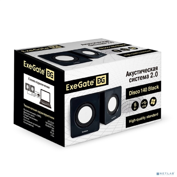 Exegate EX287057RUS Акустическая система 2.0 ExeGate Disco 140 Black (питание USB, 2х3Вт (6Вт RMS), 100-20000Гц, черный)
