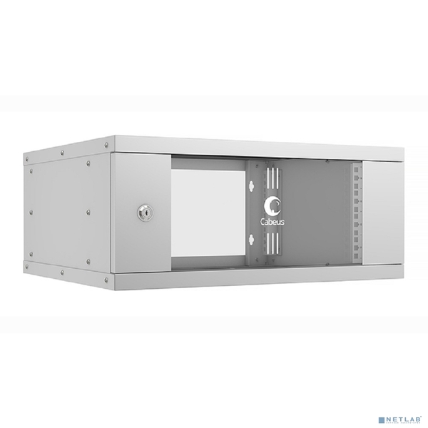 Cabeus WSC-05D-4U55/45 Шкаф телекоммуникационный настенный 19" 4U, серия LIGHT разборный, дверь стекло, цвет серый
