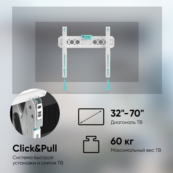Кронштейн ONKRON/ 32-65'' макс 400*400 наклон +12º от стены: 35-145мм, макс вес 68,2кг, встр уровень, белый