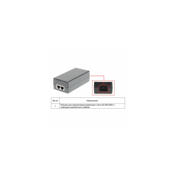 OSNOVO PoE-инжектор Gb Ethernet на 1 порт, мощностью до 65W, напряжение PoE - 52V(конт. 1,2,4,5(+), 3,6,7,8(-))