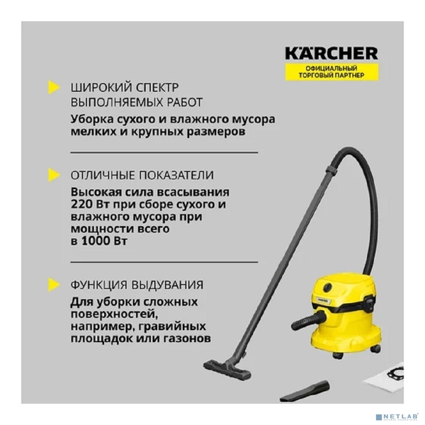Строительный пылесос Karcher WD 2 Plus V-12/4/18 1000Вт (уборка: сухая/сбор воды) желтый купить в интернет-магазине TPShop.Ru. Наличный и безналичный расчет, розничные и оптовые продажи. Самовывоз, доставка по Москве и МО, отправка во все регионы России.