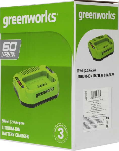 Greenworks Зарядное устройство Greenworks , 60V [2932007] купить в интернет-магазине TPShop.Ru. Наличный и безналичный расчет, розничные и оптовые продажи. Самовывоз, доставка по Москве и МО, отправка во все регионы России.