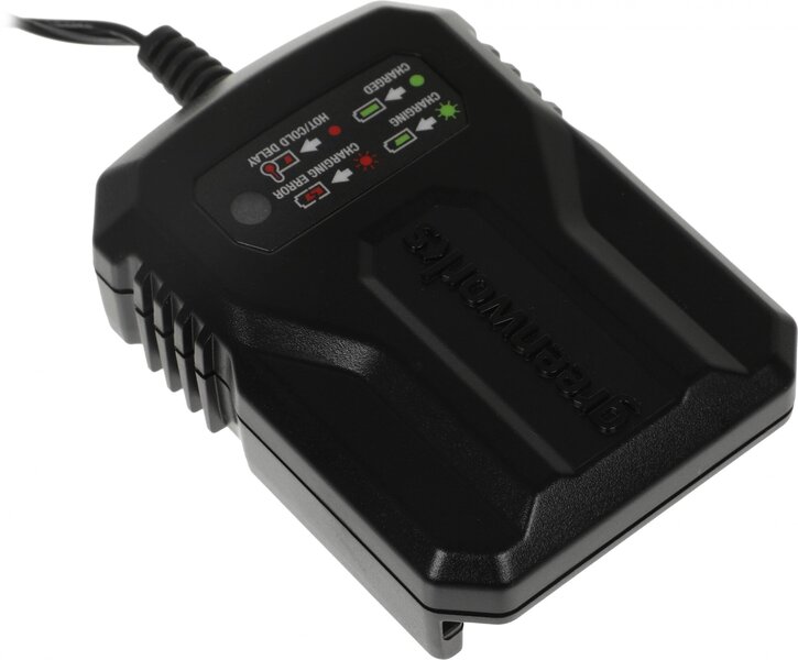- заряжает 2 Ач и 4 Ач аккумуляторы серии Greenworks 40V.
