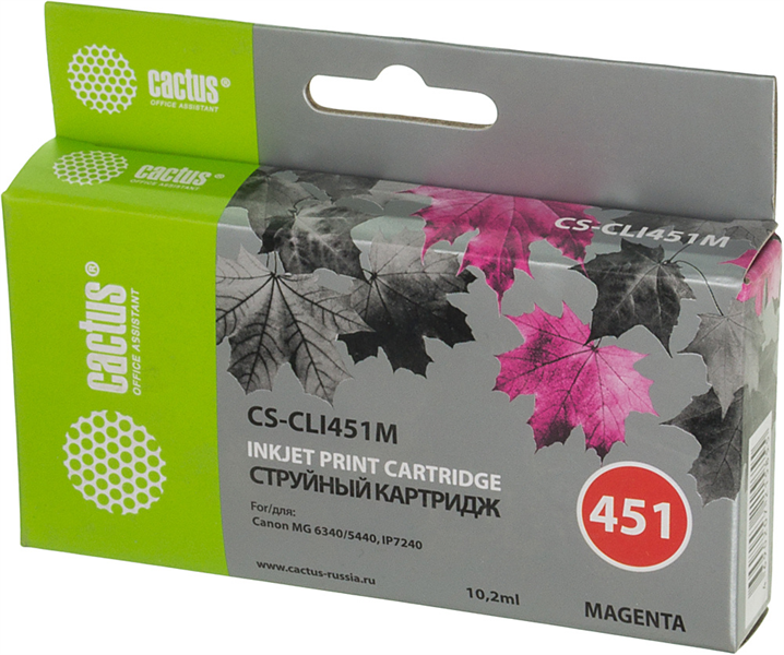 - Cactus CS-CLI451M пурпурный (12мл) для Canon MG6340/5440/IP7240