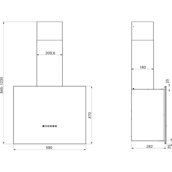 ВЫТЯЖКА HOMSair BELL 60 Black / наклонная, подвесная, 3 скорости, 650 м3 / ч, до 25 м2, 47 Дб, светодиодное LED-освещение, ширина 60 см, высота 41 см, черный цвет