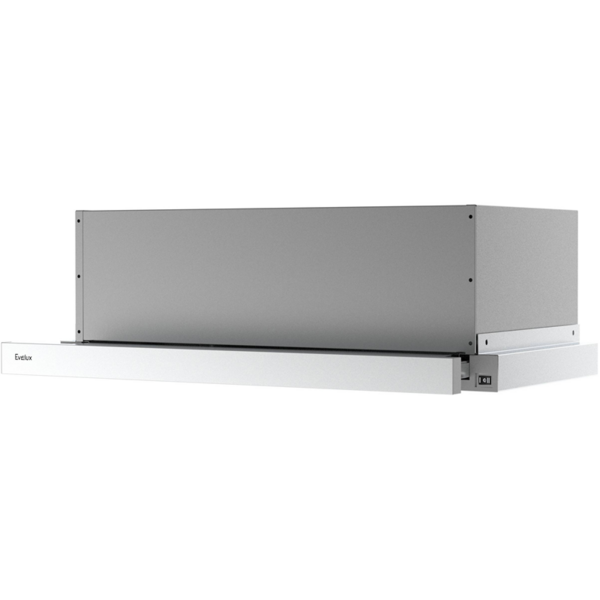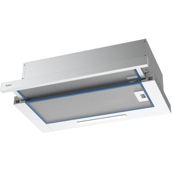 Встраиваемая телескопическая вытяжка, 60 см, отвод / циркуляция, механический контроль, 2 скорости работы, производительность 670 м3 / ч, LED освещение, нержавеющая сталь, 598х305-495х201 мм.