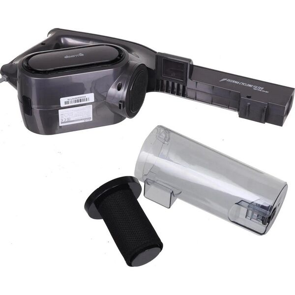- эргономичная ручка, съемный резервуар для пыли, съемный держатель для кабеля, HEPA-фильтр