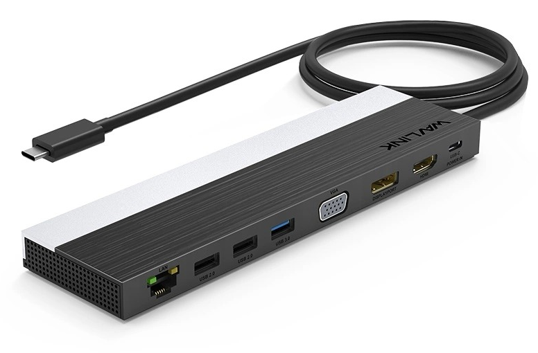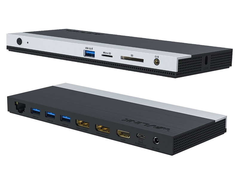 - Docking Station WAVLINK USB-C 4K Universal /85W PowerDelivery/2xUSB3.0/2xUSB2.0/1xUSB C/1xDP 4K 30HZ/1xHDMI 4K 30HZ/1xVGA/1xGigabit LAN/1xAudio In/Out/1xSD/Micro SD CardReader