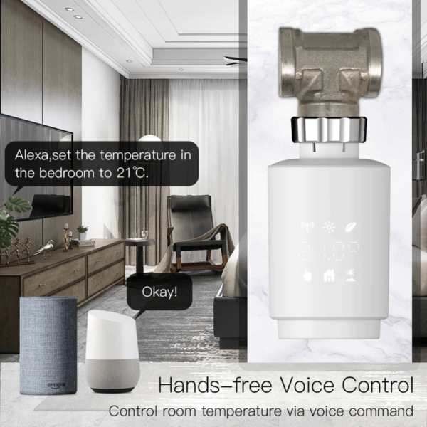 Термостатическая головка MOES Temperature Controller ZTRV-ZX-TV02 Zigbee, AA 2шт х 1.5 V, накладная, белая
