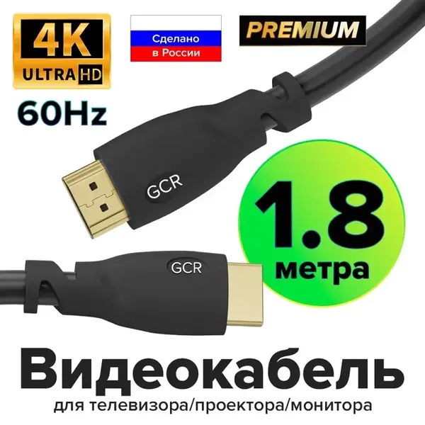 GCR Кабель Premium 1.8m HDMI 2.0, HDR, Ultra HD 4K60 Hz/ 5K30Hz, 3D, Ethernet 18.0 Гбит/с, OD8.0mm, 28/26 AWG, черный купить в интернет-магазине TPShop.Ru. Наличный и безналичный расчет, розничные и оптовые продажи. Самовывоз, доставка по Москве и МО, отправка во все регионы России.