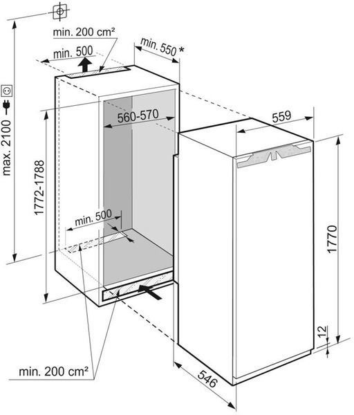 Встраиваемый холодильник LIEBHERR / EIGER, ниша 178, Pure, EasyFresh, МК SmartFrost, 3 контейнера, door sliding