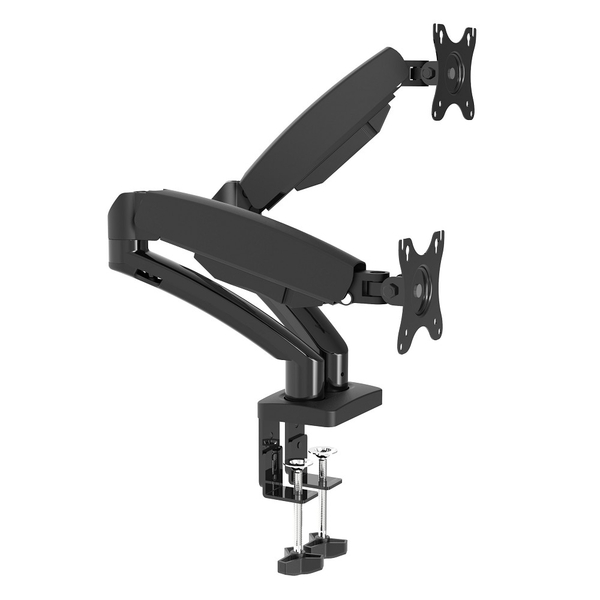[WDA2-32] Настольное крепление для двух мониторов 14"-32", газовая пружина, VESA 75x75, 100x100, нагрузка 2- 7,3 кг на монитор, наклон -60°/+60°, поворот -90°/+90°, вращение 360°, 2 способа крепления: сквозное и струбцина, черн. купить в интернет-магазине TPShop.Ru. Наличный и безналичный расчет, розничные и оптовые продажи. Самовывоз, доставка по Москве и МО, отправка во все регионы России.