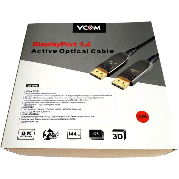 VCOM D3751-20M Активный оптический кабель VCOM DP1.4 32GBs/8K@60Hz 20м <D3751-20M> купить в интернет-магазине TPShop.Ru. Наличный и безналичный расчет, розничные и оптовые продажи. Самовывоз, доставка по Москве и МО, отправка во все регионы России.