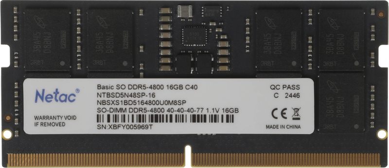 - Netac Basic SODIMM 16GB DDR5-4800 (NB5-38400) C40 40-40-40-77 1.1V Memory module