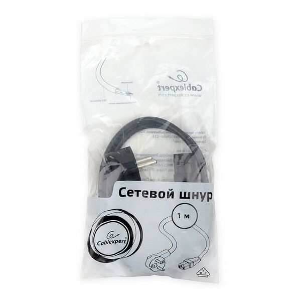 Патчкорд Кабель питания Cablexpert PC-186-VDE-1M, 1м, Schuko- C13, VDE, 10А, черный, с заземлением, пакет