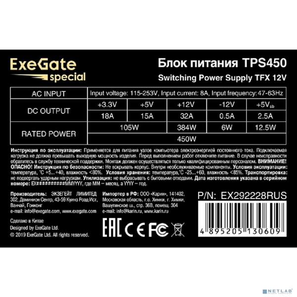 Блок питания Exegate EX292228RUS Блок питания 450W ExeGate TPS450 (TFX, 8cm fan, 24pin, 4+4pin, 3xSATA, 2xIDE, black) купить в интернет-магазине TPShop.Ru. Наличный и безналичный расчет, розничные и оптовые продажи. Самовывоз, доставка по Москве и МО, отправка во все регионы России.