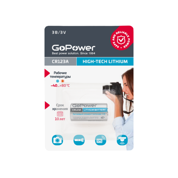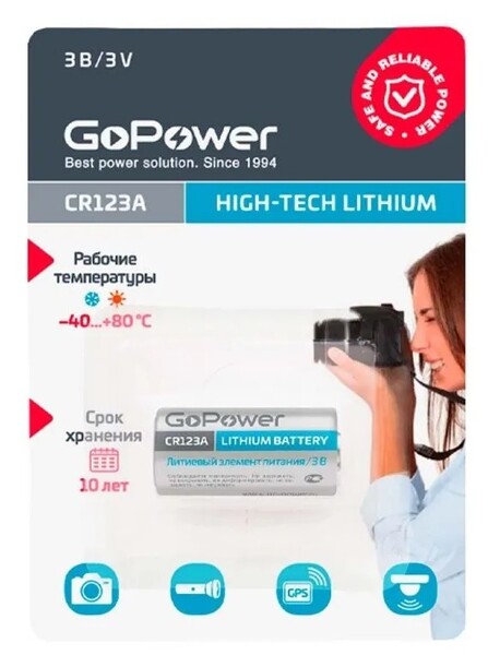 Батарейка GoPower CR123A BL1 Lithium 3V (1/8/80) купить в интернет-магазине TPShop.Ru. Наличный и безналичный расчет, розничные и оптовые продажи. Самовывоз, доставка по Москве и МО, отправка во все регионы России.
