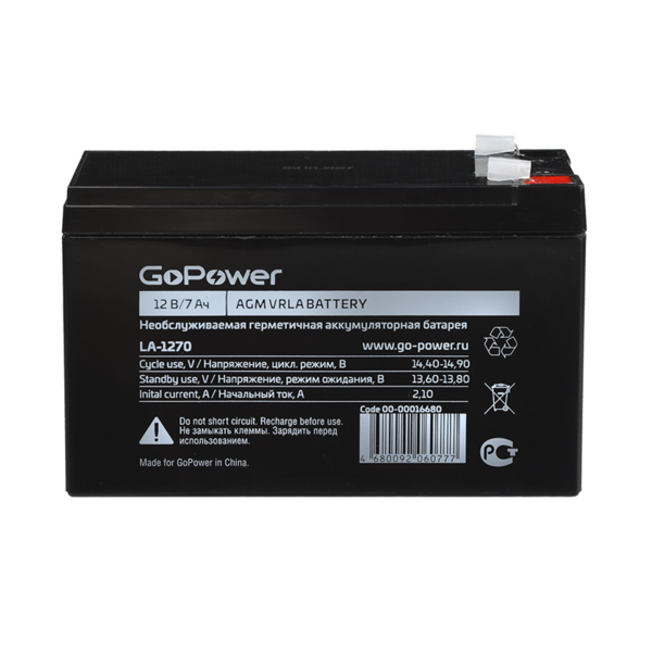 Аккумуляторная батарея Аккумулятор свинцово-кислотный GoPower LA-1270 12V 7Ah клеммы T2/ F2 (1/5) купить в интернет-магазине TPShop.Ru. Наличный и безналичный расчет, розничные и оптовые продажи. Самовывоз, доставка по Москве и МО, отправка во все регионы России.