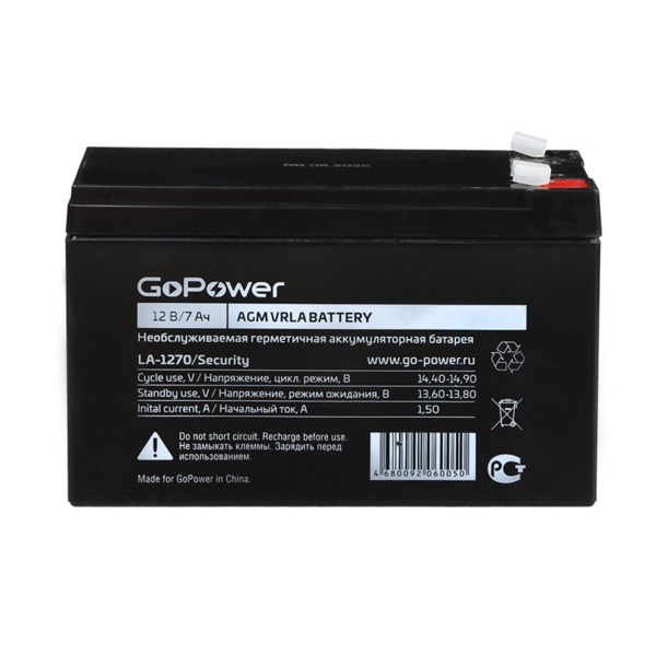 Аккумуляторная батарея Аккумулятор свинцово-кислотный GoPower LA-1270/security 12V 7Ah клеммы T2/ F2 (1/5)