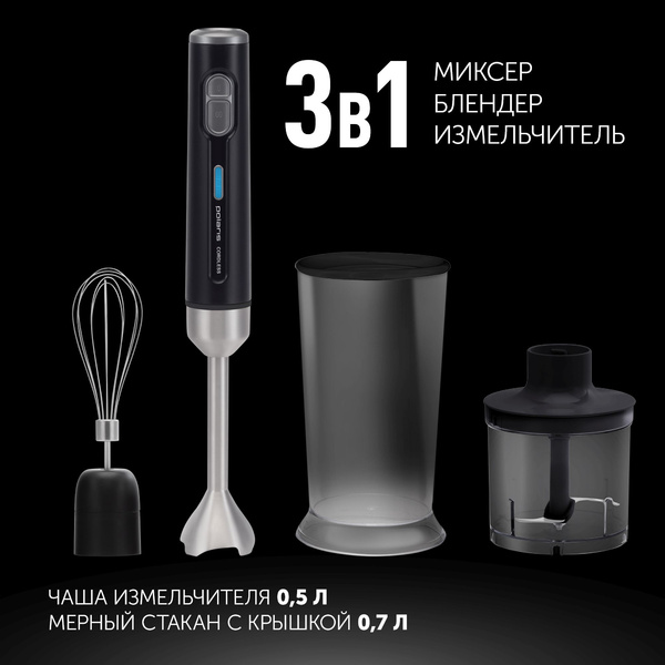 - До 30 минут автономной работы. Время зарядки аккумулятора 5 часов. Чаща для измельчения 0,5 литра. Мерный стакан с крышкой объемом 0,7 литра. Аккумулятор: Li-ion 2000 мАч, 11,1 В.